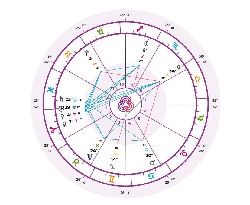Sol, Vênus e Mercúrio em Áries indicam a necessidade de espaço individual e de agir em prol dos próprios desejos. Porém, Marte em Câncer pode gerar um desejo de permanecer na zona de conforto ou de priorizar demais as necessidades de outras pessoas, principalmente da família.