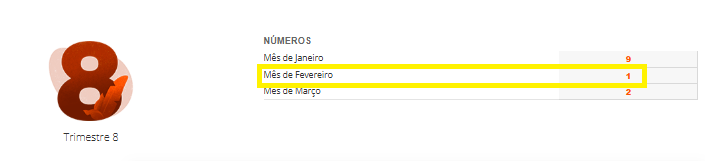 No exemplo abaixo, veja que a pessoa vai viver um Trimestre 8, mas fevereiro será um Mês 1: