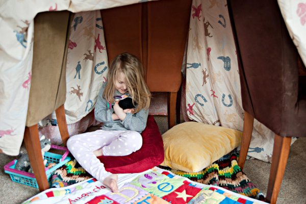 Cabaninha: com a ajuda de lençóis e cadeiras, monte uma cabaninha para as crianças. Basta forrar os móveis com o pano e a brincadeira está garantida.