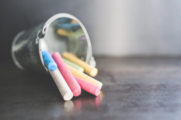 Faça uma areia cinética: coloque areia fina em um pote e misture um corante alimentício na cor desejada. Depois, despeje a mistura em um pratinho, de forma que fique bem esticada. Deixe secar de um dia para o outro. Quando a areia estiver seca, peneire. Pode adicionar glitter se quiser. Reserve.