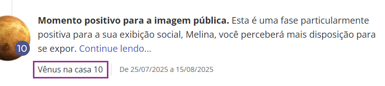 - Então, procure nos trânsitos o de “Vênus na Casa…”. Na imagem abaixo, por exemplo, a pessoa está com Vênus na Casa 10.
