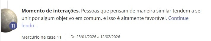 - Procure na lista por Mercúrio. Vai aparecer “Mercúrio na Casa…”, como no exemplo abaixo, em que está na Casa 11.